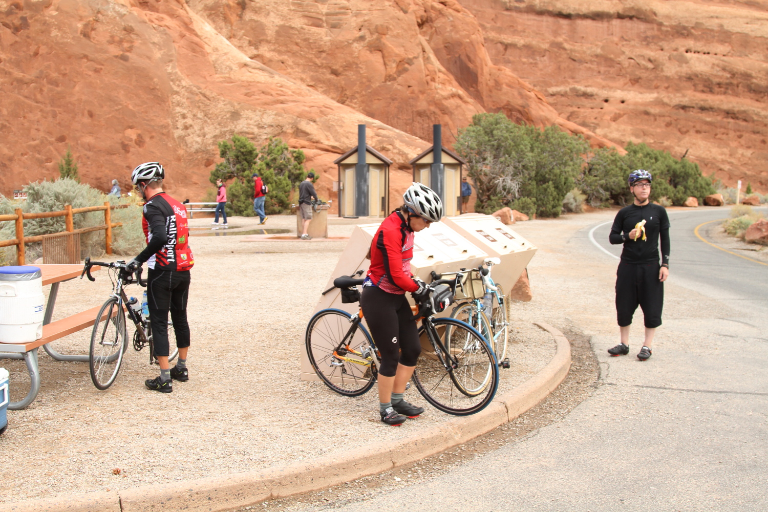 Five riders accepted the challenge and all finished. The prior day had some major storm activity including flash flooding. Consequently part of the bike trail was awash with large amounts of sand and debris, causing Patrick to get a puncture within the first five miles! (He later flatted again on the same tire, which caused him to fall behind the rest of the group).